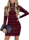 - 【Features】Long-sleeve Sweater dress in Horizontal Stripes featuring banded round neckline gives an edgy, fashion look of the season.