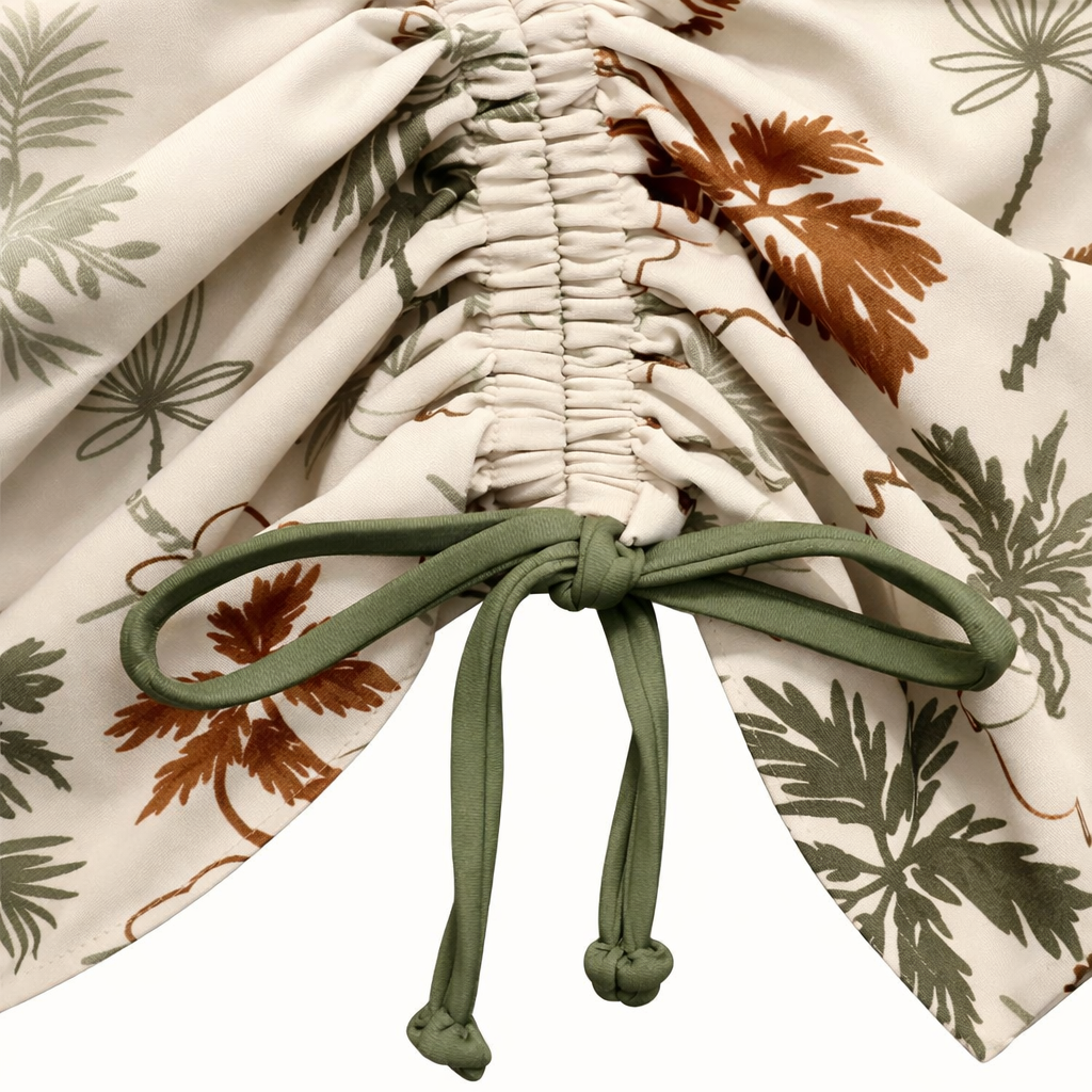 Women’s Strapless Tube Top & Palm Print Mini Bottom Set